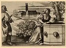 Giulio Campagnola (Italian: [ˈdʒuːljo kampaɲˈɲɔːla]; c. 1482 – c. 1515) was an Italian engraver and painter, whose few, rare,[1] prints translated the rich Venetian Renaissance style of oil paintings of Giorgione and the early Titian into the medium of engraving; to further his exercises in gradations of tone, he also invented the stipple technique, where multitudes of tiny dots or dashes allow smooth graduations of tone in the essentially linear technique of engraving; variations on this discovery were to be of huge importance in future printmaking. He was the adoptive father of the artist Domenico Campagnola.