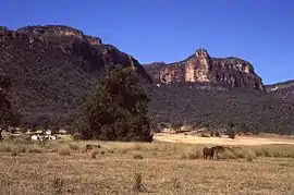 Another national park was created later, known as the Gardens of Stone National Park. This takes in some areas around the Capertee Valley, including the flat-topped mountain—or butte—called Pantony's Crown. This mountain was named after an early farmer who opened the area up to sheep farming.[57] The National Trail, a long-distance walking trail that goes from Melbourne to Cooktown, also passes through the Capertee Valley.