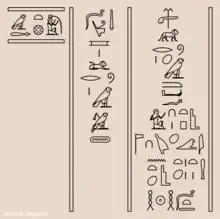 The Graffito of Esmet-Akhom, also known by its designation Philae 436 or GPH 436, is the last known inscription written in Egyptian hieroglyphs, carved on 24 August AD 394. The inscription, carved in the temple of Philae in southern Egypt, was created by a priest named Nesmeterakhem (or Esmet-Akhom)[lower-alpha 1] and consists of a carved figure of the god Mandulis as well an accompanying text wherein Nesmeterakhem hopes his inscription will last "for all time and eternity". The inscription also contains a text in the demotic script, with similar content.