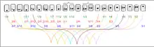 The three rows of tines are laid out in the cycle of fifths which permits easy performance of chord sequences, and they are arranged in such a manner that three- or four-note chords can be played with ease. At the top of the instrument case, these chords are laid out for the convenience of the player. The chords are major, minor, diminished seventh, major seventh, diminished, augmented, minor seventh and sixth.
