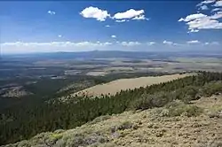 Hager Mountain is a large silicic lava dome structure that was formed approximately 5.9 million years ago. The mountain's primary rock is from the Hayes Butte Basalt flows. The eruptions that produced these flows came from a fault zone running southeast–northwest between Hager Mountain and Hayes Butte. The eruptions that created Hager Mountain released lava that flowed down the slopes of the volcanic dome onto plains around the mountain. The Hayes Butte Basalt overlays the Fort Rock Formation and earlier Picture Rock Basalt layers. All of these lava flows occurred during the Pliocene epoch. The Hayes Butte Basalt flows that form Hager occurred near the end of that epoch.[4][5][6][7]