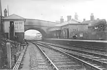 The line through the station was electrified in 1966 as part of the London Midland Region's electrification programme.[1] The actual energization of the line from Coventry to Walsall through Aston took place on 15 August 1966.[2] The road bridge was replaced and the signalbox removed as part of the works (the nameplate from the signalbox is now in Chasewater Railway Museum[3]). The station was renamed Hamstead on 6 May 1974.[4][5]
