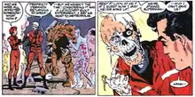 Henshaw spends some time traveling between planets, bonding with local lifeforms to learn about the culture and history of various worlds. Henshaw comes to believe that Superman was responsible for the tragedy of the Excalibur after learning that around the time of the accident, the Man of Steel had thrown a rogue Kryptonian artificial intelligence (the Eradicator) into the Sun. Henshaw believes that this created the solar flare that resulted in the Excalibur crew's transformations (although Superman had shared this concern with Terri after he had saved her life and she had confirmed that the flares would have been triggered before Superman disposed of the Eradicator).[8] Over time, Henshaw becomes delusional and paranoid, believing that the Man of Steel had intentionally caused the deaths of himself, his wife, and his crew, then driven him from Earth. Arriving on a planet controlled by alien overlord and Superman foe Mongul, Henshaw learns of Warworld and forcibly recruits Mongul as part of a plan for revenge against Superman.[9]