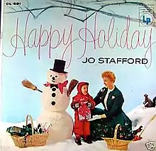 Happy Holiday is a 1955 Christmas album of Christmas songs and carols by Jo Stafford, accompanied by her husband Paul Weston and his orchestra. The entire family participated in the creation of this album; young Tim Weston is the small boy on the cover.[2] Stafford is also joined by The Starlighters for vocal background, just as she was after her version of The Chesterfield Supper Club moved to Hollywood.[2][3][4]