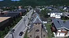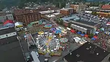 Harlan was first settled by Samuel and Chloe Howard in 1796. Upon the founding of Harlan County (named for Kentucky pioneer Silas Harlan) in 1819, the Howards donated 12 acres (49,000 m2) of land to serve as the county seat.[5] The community there was already known as "Mount Pleasant", apparently owing to a nearby Indian mound. A post office was established on September 19, 1828, but called "Harlan Court House" due to another Mt. Pleasant preempting that name.[6] During the Civil War, Confederate raiders under Gen. Humphrey Marshall occupied the town; the local postmaster renamed the community "Spurlock" after himself;[6] and, in October 1863, the courthouse was burnt down in reprisal for the Union destruction of the courthouse in Lee County, Virginia.[5] In 1865, the post office was renamed "Harlan" and, although the community was formally incorporated by the state assembly as "Mount Pleasant" on April 15, 1884,[7] the town was already usually called "Harlan Court House" or "Harlan Town" by its inhabitants.[6] The city's terms of incorporation were amended to change the name to "Harlan" on March 13, 1912. One year before, the Louisville and Nashville Railroad had arrived in Harlan and prompted massive growth. The city had initially expanded east along the Clover Fork; after World War II, it also expanded south along Martin's Fork.[5]