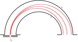An ideal hemispherical analyzer consists of two concentric hemispherical electrodes (inner and outer hemispheres) of radii and held at proper voltages. In such a system, the electrons are linearly dispersed, depending on their kinetic energy, along the direction connecting the entrance and the exit slit, while the electrons with the same energy are first-order focused.[3]