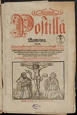 In his translations into Polish, Hieronim, following his father, relied heavily on Czech, and even argued that Czech and Polish were a single language.[4] This practice had origins in an argument between Hieronim's father and another Polish translator in Królewiec, Jan Seklucjan.[5]
