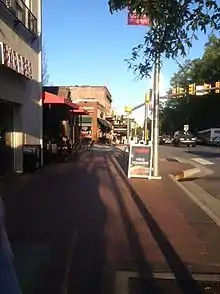 One notable business on Hillsborough Street is Players' Retreat, a saloon that opened more than 50 years ago.[1] The bar encompasses a former restaurant, the Morning Room, which served as the unofficial headquarters of Hargrove Bowles' 1972 gubernatorial campaign against Jim Holshauser. It was also a hangout of the Wolfpack basketball players, of Norman Sloan, in the 1970s.[1] Mitch's Tavern was used for scenes in the film Bull Durham in the 1980s.[1] The publishing company Lulu is headquartered on Hillsborough Street.[1]