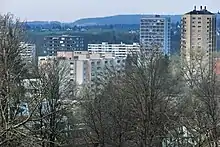 Apartment buildings in Hirzenbach as seen from Sagentobel valley on Adlisberg (April 2010)