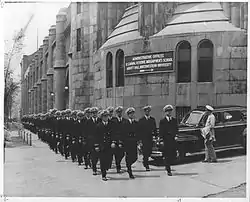 Despite the extensive on-campus activity, enrollments plummeted from 19,691 in 1940 to 13,470 in 1944.[73] In 1942, Snyder ordered that students of Japanese descent be barred from enrolling to comply with his interpretation of government internment policy, although this controversial decision was reversed after an outcry from the press and community.[74] Over 11,000 alumni and 400 faculty and staff members fought in World War II and more than 300 died.[29][74] 537 major decorations were awarded to Northwestern alumni, including two Medal of Honors awarded posthumously to John L. Jerstad and Walter E. Truemper.[71]