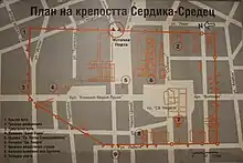 The Celtic tribe Serdi gave their name to the city.[3] The earliest mention of the city comes from an Athenian inscription from the 1st century BC, attesting Astiu ton Serdon, i.e. city of the Serdi.[4] A local inscription and Dio Cassius recorded that the Roman general Crassus subdued the Serdi and beheaded the captives.[5]