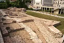 A set of no less than 8 horrea (warehouses) were found inside the southwestern quarter of the walls and dated to the early 4th century indicate that Serdica was probably a supply-centre of regional importance, connected to the Danube by the valley of the river Iskur (Oescus).[13]