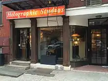 Holographic Studios, located in the borough of Manhattan in New York City, is the world's oldest gallery of holography.[1] It was founded in 1979[2] by Jason Sapan, one of the pioneers of holography. The storefront level gallery features the world's largest collection of motion image integral holograms.[3] On display in the gallery are a variety of different types of holographic images, including a collection of celebrity hologram portraits. There are also cylindrical 360° floating images, multiple image holograms that change as you walk by, and computer generated holograms as well as a selection of novelty hologram items and stickers. Directly below the gallery is the laser laboratory where holograms are created.[4] Holographic Studios creates custom holograms, holographic portraits, offers classes, and operates tours.