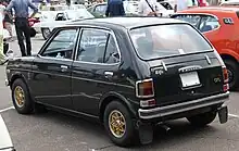 A sporty engine with twin constant velocity carburettors was added, for the new "Touring" range. The all two-door lineup consisted of the SS, SL, and the GS on top. Power was up to 36 PS (26 kW; 36 hp) at 9,000 rpm, and the top-of-the-line GS received a dogleg five-speed gearbox to take full advantage of the peakier engine.[10] The Touring GS could reach a top speed of 120 km/h (75 mph).[11] On June 15 of the same year, the Life received a minor facelift with redesigned grilles,[12] and in September four-door versions of the Touring range appeared. Production of the lower-powered "Town" engine also came to an end during 1972.[7]