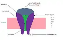 It is believed that honokiol acts on GABAA receptors similarly to benzodiazepines and Z-drugs. However, honokiol has been shown to achieve anxiolysis with fewer motor or cognitive side effects than GABAA receptor agonists such as flurazepam and diazepam. It has been shown that honokiol likely has a higher selectivity for different GABAA receptor subtypes and both magnolol and honokiol showed higher efficacy when acting on receptors containing δ subunits.[1] GABAA receptors control ligand-gated Cl− channels that can help increase seizure thresholds through the influx of chloride anions. Honokiol may also affect the synthesis of GABA. In a study where mice received seven daily injections of honokiol, researchers observed a mild increase in hippocampal levels of glutamate decarboxylase (GAD67) an enzyme that catalyzes the synthesis of GABA. However, the increase was within the margin of error for the method used to quantify the protein.[24]