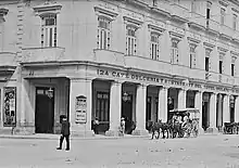 The hotel traces its origins to 1844, when a two-story building known as El Cafe or The Escauriza Saloon was built at the site. In 1863, El Cafe was sold to Joaquin Payret, who renamed it El Louvre. In 1875, Payret sold the cafe to finance construction of a theater across the street, and the Gran Hotel de Inglaterra was constructed, opening on December 23, 1875. The two-story structure was owned by Manuel López and Urban González[2] and was designed in the neoclassical style. In 1886, the hotel was sold to Don Francisco Villamil, who added a third floor to the building.