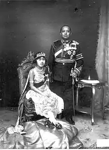 She became queen because of her pregnancy, making King Vajiravudh extremely happy with a much-anticipated heir.[2] However, it was never to be, as the Queen miscarried five or six times during her queenship. She was later demoted to the rank of Princess Consort.[3]