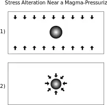 - Lessening of magma pressure and formation of concentric graben near summit.