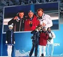 Italy competed at the 2014 Winter Olympics in Sochi, Russia, from 7 to 23 February 2014. On 21 February it was announced that bobsledder William Frullani had tested positive for methylhexanamine and was sent home from Sochi.[3] For the first time since 1980, Italy failed to win a gold medal in an Olympics. Closest was the alpine skier Christof Innerhofer who lost the gold in downhill against Matthias Mayer of Austria with only six hundredths of a second separating the two.