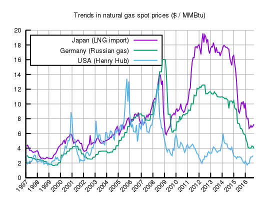 The main concern for users is that JCC is predominately used for pricing LNG contracts. Oil-based LNG contracts are priced considerably higher than alternatives as they reflect the price of oil imports.[28] In European and North American nations, LNG pricing has already shifted from an oil-based pricing index to hub-based pricing such as the Henry Hub and Dutch Title Transfer. However, most East Asian nations continue to use the JCC to price LNG. cheaper alternative. In 2014, senior gas analyst at the Institute of Energy Economics, Hiroshi Hashimoto, stated “the aim is to link 100% to Henry Hub prices, rather than JCC as has been the custom globally”.[29]