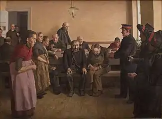 He was a pacifist so, to avoid military service, he worked as a travelling companion for visitors to Switzerland and Germany, where he also found work as a painter.[3] While in Germany, he came in contact with the Social Democrats and, in 1892, settled in Berlin, where he created paintings of poor people in times of distress, some of them done in homeless shelters.[2] Later, these would come to be considered his most important works.