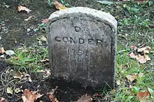 Conder died in Hackney in London in 1781 and was buried in the Nonconformist cemetery of Bunhill Fields. His grave was originally marked by a very simple stone simply stating "Dr Conder 1781". An improved stone was added around twenty years later, which includes a verse written by Conder. The stones lie in the northern spur of the T-plan cemetery, against the west wall.