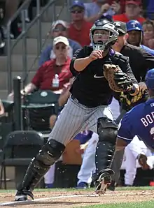![]() Pacheco with the Colorado Rockies in 2013 | |