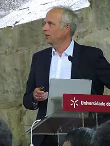 Jörg Wrachtrup (born 27 December 1961) is a German physicist. He is director of the 3rd Institute of Physics and the Centre for Applied Quantum Technology at Stuttgart University.[1] He is an appointed Max Planck Fellow at the Max Planck Institute for Solid State Research in Stuttgart.[1] Wrachtrup is a pioneer in solid state quantum physics. Already in his PhD thesis, he carried out the first electron spin resonance experiments on single electron spins.[2] The work was done in close collaboration with M. Orrit at the CNRS Bordeaux. To achieve the required sensitivity and selectivity, optical excitation of single molecules was combined with spin resonance techniques. This optically detected magnetic resonance is based on spin dependent optical selection rules. An important part of the early work was coherent control. As a result the first coherent experiments on single electron spins and nuclear spins in solids were accomplished.