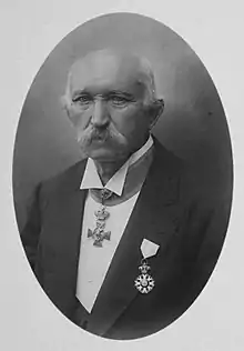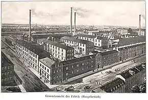 Schmitt was also, notably, an extremely successful businessman. In Gründerzeit, he was involved in numerous start-ups. He was on the board of Dresdner Bank,[9] Arnhold Brothers. From 1898 until his death he served as chairman of the board of the Schweinfurt ball producer " Fries & Höpflinger A.G"[10] which later merged to become the conglomerate SKF, and Schmitt contributed decisively to the boom of the company.[11][12][13]