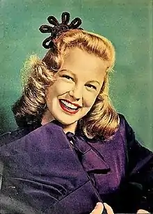 Allyson's breakthrough was in Two Girls and a Sailor (1944) where the studio image of the "girl next door"[25] was fostered by her being cast alongside long-time acting chum Van Johnson, the quintessential "boy next door."[26] As the "sweetheart team", Johnson and Allyson were to appear together in four later films.[27][28]