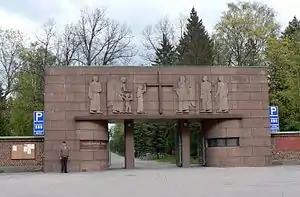 During the Battle of Tampere, Kalevankangas was the scene of much conflict. The first goal of the White Guard had been to take Kalevankangas, the barrack area and the graveyard. The Swedish volunteers were on the right, and the Jägers were on the left. The Reds were protected by the gravestones and White veterans would later recall that it seemed nearly impossible to get to them. The Battle of Tampere was the bloodiest battle of the entire Finnish Civil War, and the bloodiest in Finnish history at that point in time. Kalevankangas Cemetery still has headstones that have been shattered, or which have bullet holes. The killed Reds and those who later died in the Tampere camp were buried in mass grave of 2,700 people.[3][2][4]