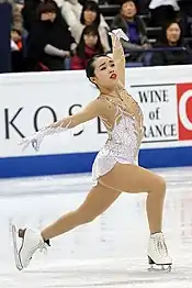 Chen's mentor is 1992 Olympic Champion Kristi Yamaguchi, who shares a hometown with her.[11] Chen published a memoir titled Finding the Edge: My Life on the Ice in November 2017, in which she revealed that she suffers from spondylolisthesis.[12] Chen enjoys painting and is a fan of the Japanese character Totoro.[2] On 2019 International Women's Day, she was chosen to be one of eight POWERGIRLs that serve as brand ambassadors for social fitness blogger Cassey Ho's activewear company, POPFLEX Active.[13]