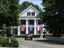 The major roads in Kennebunkport village are Western Avenue, which runs southwest to cross the river into Kennebunk, North Street, which runs inland, and Ocean and Maine Streets, which run parallel to the river, southward toward Cape Arundel. The district extends along these roads, and includes numerous properties on the side streets which connect them. It has 147 buildings, of which only 24 were built after 1925. Most of these later structures (for example, the 1960 town offices) are in sympathetic styles. Residential properties in the district are typically high-quality vernacular interpretations of architectural styles popular at the time of their construction. A few houses date to the colonial period, including the 1745 Gideon Walker House on South Street, which was altered to plans by John Calvin Stevens in 1910. The largest number of buildings in the district are from the Federal period, when Kennebunkport was at its economic height. One of the finest houses from this period is the Capt. Nathaniel Lord Mansion, separately listed on the National Register in 1973.[2]