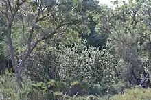 Key upper storey plant species within the bushland are Banksia menziesii, Banksia attenuata and Jarrah (Eucalyptus marginata). As of 2003, some 207 plant species have been found, representing 42 families and 111 genera.[5] Major weeds are Asparagus asparagoides, perennial veldt grass, Gladiolus caryophyllaceus, while Ehrharta longiflora, Ursinia anthemoides, and Misopates orontium are also threatening also to become a problem.[5]