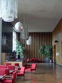 In addition to the theater itself, other rooms included a library, an office of the Oktoberklub, and a "Representation Room" in which VIPs and SED party functionaries were entertained before and after film premieres.[7]