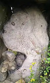 The author George Orwell visited the site on 21 August 1938, as detailed in his domestic diary of that date.[59] He describes it as "a druidical altar or something of the kind. ... The stones are on top of a high hill & it appears they belong to quite another part of the country." The stones are actually well down the slope of Blue Bell Hill, 1.32 km to the north.[60]