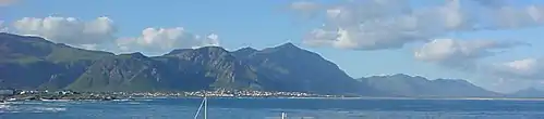 The Kleinrivier Mountains are a mountain range in the Cape Fold Belt of the Western Cape province of South Africa. Kleinrivier means "Small River" in Afrikaans and is named after the river in the area that mouths out near Hermanus where the range begins in the west, then continues eastward to north-east of Stanford and terminates at Akkedisberg Pass. The highest mountain in the range is Maanskynkop (964m) (Afrikaans: Moonshine Peak) and dominates the entire Walker Bay coastline. The mountains experience a very mild Mediterranean climate, moderated by cool, moist winds blowing off the South Atlantic Ocean. Although no peaks exceed 1000m, the range is still quite imposing, as it rises very steeply from sea level.