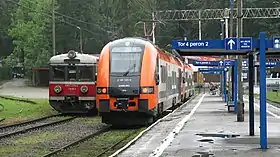 From 14 December 2014 Koleje Małopolskie began transporting passengers on the route Kraków Główny – Wieliczka Rynek-Kopalnia with modern and air conditioned trains.[3] The travel time is 21 minutes, and the train will begin the route at 05:00 to 23:00 every thirty minutes. In 2015 after renovations the route was extended to Kraków Balice which has direct access to the John Paul II International Airport, taking over the former Balice Ekspres train operated by Polregio.[4][5]