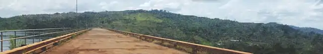 The Kossou Dam is an embankment dam that impounds the Bandama River about 32 kilometres (20 mi) northwest of Yamoussoukro in Côte d'Ivoire. It has a power generating capacity of 174 megawatts (233,000 hp), enough to power over 118,000 homes. The dam impounds the largest lake in Côte d'Ivoire, Lake Kossou.[1][2][3]