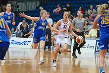 Veal went on to play for the Canberra Capitals, winning three WNBL championships with the team.[3] She won the WNBL Grand Final with the team during the 1999/2000 season, her first season with them. The Capitals beat the Adelaide team 67–50 in the match, with Veal contributing 22 points towards the victory in the second half of the game. She was named the Most Valuable Player for the Grand Final.[7] She missed parts of the 2001/2002 season because she had a knee injury,[9] but while teammate Lauren Jackson dealt with stress fractures in her shins during her 2002/2003 season with the Capitals, Veal stepped up her level of play to compensate for Jackson's absence from the team.[9] Her coach, Tom Maher, said she was the best point guard in the league that season.[9] In mid-2003, she was hoping to get a contract to play with the Canberra Capitals.[10]
