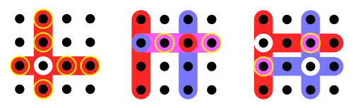 Following the method of Jordan (1869), but see also Assmus and Sardi (1981),[2] arrange the 16 points (say the numbers 1 to 16) in a 4x4 grid. For each element in turn, take the 3 other points in the same row and the 3 other points in the same column, and combine them into a 6-set. This creates one 6-element block for each point.