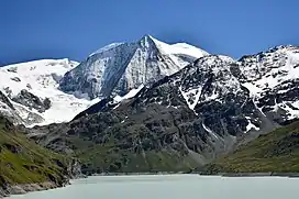 ![]() La Serpentine (left) and Mont Blanc de Cheilon (centre) from the Lac des Dix | |