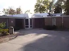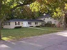 At the celebration of the school's centennial in 1957, head of school Harold H. Corbin Jr declared, "The City of Lake Forest, born in an educational dream, should never allow itself to forget that in one vital sense it is a manufacturing town--not merely residential--and its sole demonstrable product is education."[21] The poet Robert Frost and Princeton president Harold Dodds also visited campus and gave speeches in conjunction with the activities. In other festivities, plans were announced to build a headmaster's residence on campus to be named for General Robert E. Wood, the business tycoon whose advocacy for America First before World War II had turned into a penchant for Joseph McCarthy in the postwar period.[22][23]