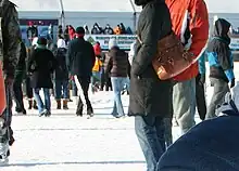 Lake Nokomis is one of several lakes in Minneapolis, Minnesota, and part of the city's Chain of Lakes. The lake was previously named Lake Amelia in honor of Captain George Gooding's daughter, Amelia, in 1819. Its current name was adopted in 1910 to honor Nokomis, grandmother of Hiawatha.[1] It is located in the southern part of the city, west of the Mississippi River and south of Lake Hiawatha. The lake is oval in shape, with a long axis running southwest to northeast. Two pathways circle the lake, a 2.7-mile (4.3 km) pedestrian trail and a 2.8-mile (4.5 km) bicycle trail.[2] Because the lower part of the lake is crossed by Cedar Avenue running north-south, the impression from the ground is that the lake is shaped like an L. The lake has an area of 204 acres (0.83 km2).