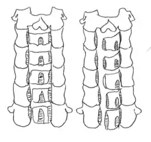 Laminoplasty is an orthopaedic/neurosurgical surgical procedure for treating spinal stenosis by relieving pressure on the spinal cord. The main purpose of this procedure is to provide relief to patients who may have symptoms of numbness, pain, or weakness in arm movement. The procedure involves cutting the lamina on both sides of the affected vertebrae (cutting through on one side and merely cutting a groove on the other) and then "swinging" the freed flap of bone open thus relieving the pressure on the spinal cord. The spinous process may be removed to allow the lamina bone flap to be swung open. The bone flap is then propped open using small wedges or pieces of bone such that the enlarged spinal canal will remain in place.