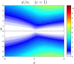 where are constants. The physically relevant solution to the jet corresponds to the case (Equivalently, we say that , so that the solution is free from singularities on the axis of symmetry, except at the origin).[7] Therefore,