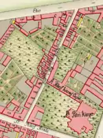 No. 2 is from 1829 and the former rectory for the pastor at St. Peter's Church.[2] The rest of the northeast side of the street is dominated by the wall of St. Peter's graveyard and the large Sankt Petri Passage complex (No. 4–6) with a passageway that through several interior courtyards links Larslejstræde and Nørregade on the other side of the block.