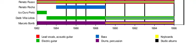 - Renato Russo: bass (1982 - 1984; 1989 - 1996), electric guitar (1984 - 1989), keyboards (1982 - 1996), lead vocals, acoustic guitar (1982 - 1996; died 1996)