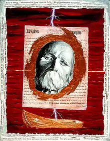 Hades is known for "Also Sprach Zarathustra", as well as two other paintings, which Russian nationalists deem Russophobian. In March 2008 a group of Russian nationalists took legal action against her, claiming her paintings provoke "racial and nationalistic hostility and hatred". The first work is called Welcome to Russia (1999). It was purchased by Igor Markin Museum of Contemporary Art,[6] the name of the other painting is The Chimera of the mysterious Russian soul (1996). It was exhibited only once, at the Second Moscow Biennale of contemporary art in 2005. The nationalists were offended by Hades' depiction of the Russian soul as a cartoonish creature with clichéd attributes of Russian everyday life — a bottle of vodka, a model of Sputnik — and by the crudely painted text in Welcome that indicts the Russian character as simultaneously overaggressive and alarmingly God-fearing.[7]