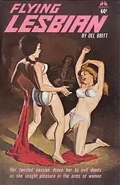 Lesbian pulp fiction is a genre of lesbian literature that refers to any mid-20th century paperback novel or pulp magazine with overtly lesbian themes and content. Lesbian pulp fiction was published in the 1950s and 1960s by many of the same paperback publishing houses as other genres of fiction, including westerns, romances, and detective fiction. Because very little other literature was available for and about lesbians at this time, quite often these books were the only reference the public (lesbian and otherwise) had for modeling what lesbians were. English professor Stephanie Foote commented on the importance of lesbian pulp novels to the lesbian identity prior to the rise of organized feminism: "Pulps have been understood as signs of a secret history of readers, and they have been valued because they have been read. The more they are read, the more they are valued, and the more they are read, the closer the relationship between the very act of circulation and reading and the construction of a lesbian community becomes…. Characters use the reading of novels as a way to understand that they are not alone."[1]